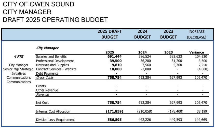 | Figure 5: City Manager's 2025 Budget Increase Source: Owen Sound 2025 Budget |