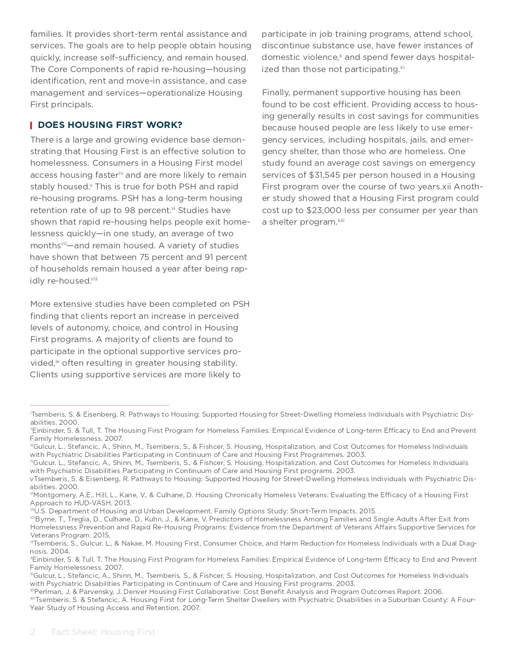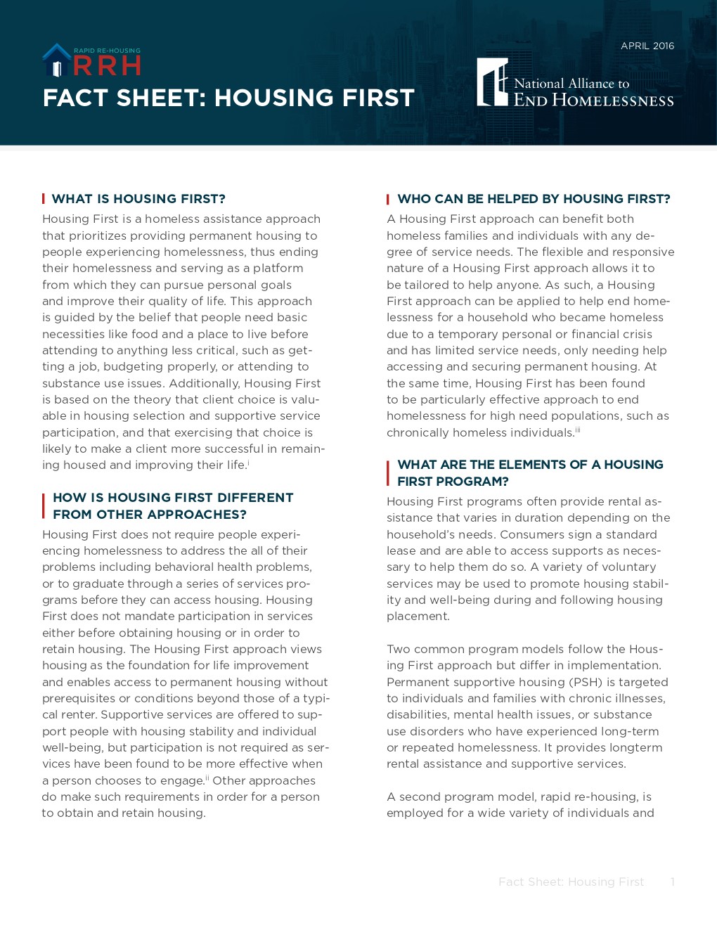 Housing First Fact Sheets